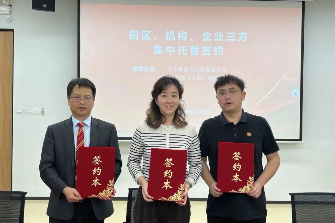 随后,海星体育上海分所与企业和园区进行了三方签约仪式,签约企业有节卡机器人股份有限公司、霖鼎光学(上海)有限公司、上海水之三慢生物科技有限公司、上海迪普深合生物科技有限公司、上海瑗肽生物科技有限公司等。